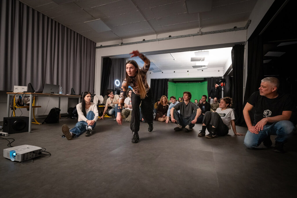 Udeleženci se bodo nato razdelili v manjše skupine ter raziskovali ustvarjanje lastnih koreografskih fraz, navdihnjenih z generiranimi videi po lastni izbiri. Ob zaključku delavnice bodo udeleženci predstavili, kar so ustvarili, ter skupaj razpravljali o tem, kako bi se ti nizi gibov lahko uporabljali v vsakdanjem življenju za spreminjanje našega zaznavanja dogodkov.