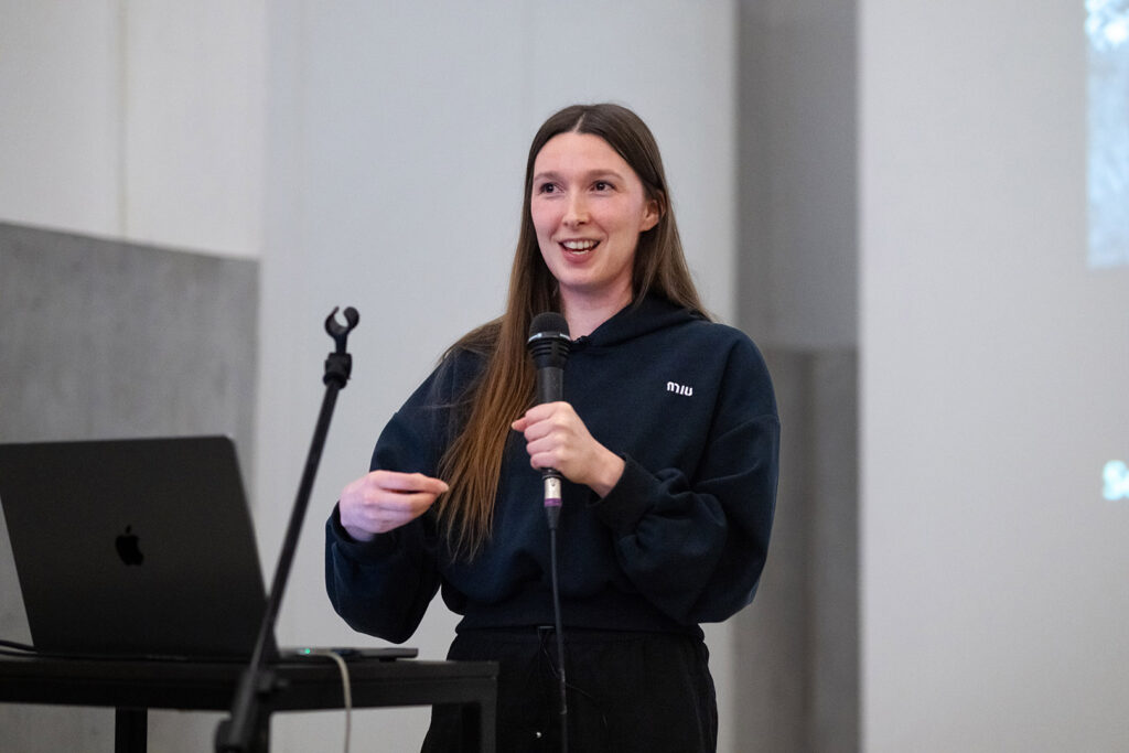 Predavanje raziskuje tudi, kaj pomeni, da se ljudje telesno sinhroniziramo s podobami. Od gibanja v počasnem posnetku do hoje kot NPC ter predstavljanja samega sebe kot podobe, ustvarjene z umetno inteligenco, Davies pokaže, kako njeno delo zamišlja svet, v katerem lahko telo ponovno prilagodi – ali celo poruši – naš odnos do tehnologije.