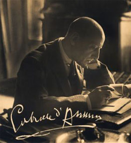 Gabriele D’Annunzio (1863 – 1938)![]() Gabriele d'Annunzio was an Italian poet, journalist, novelist, dramatist, daredevil, military hero, and political leader, the leading writer of Italy in the late 19th and early 20th centuries. D’Annunzio’s literary works are marked by their egocentric perspective, their fluent and melodious style, and an overriding emphasis on the gratification of the senses, whether through the love of women or of nature. After the start of World War I, d'Annunzio made public speeches in favor of Italy's entry on the side of the Allies. After Italy declared war he plunged into the fighting himself. D’Annunzio was fond of bold, individual military actions. Two of his best known came in 1918: his flight over Vienna (volo di Vienna), where he dropped thousands of propaganda leaflets over the city, and his prank at Buccari Bay (beffa di Buccari), a daring surprise attack on the Austrian fleet with power boats.