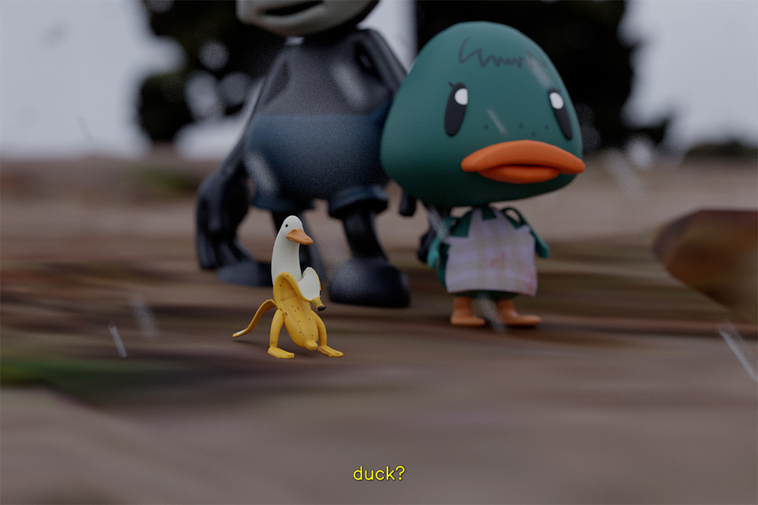 Ko se protagonist giblje skozi »renderirano realnost«, v kateri se zaznavna dvoumnost sooča s togo logiko strojnega vida, je gledalec povabljen k razmisleku o razliki med zajemanjem in algoritemskim asembliranjem nas samih in našega okolja. duckrabbit.tv ponuja humorno, a hkrati nelagodno meditacijo o naseljevanju sveta podob, ki ga urejajo digitalne in algoritemske operacije, ter o njegovih družbenih in političnih posledicah za nenormativne subjekte.