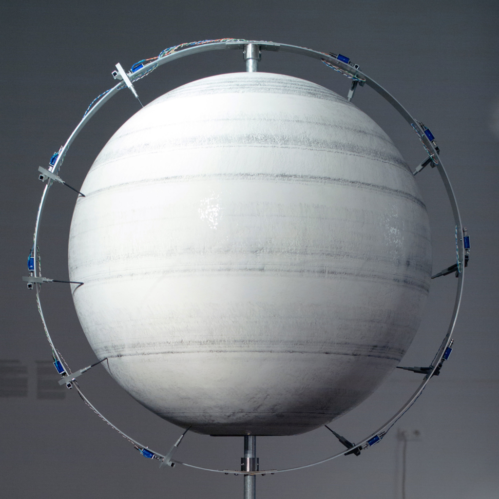 Grški matematik Pitagora je s teorijo o harmoniji sfer vzpostavil tezo, da Sonce, Luna in drugi planeti v našem osončju oddajajo vsak svojo edinstveno orbitalno resonanco, ki temelji na njihovi orbitalni revoluciji, pri čemer kvaliteta življenja na Zemlji odraža smisel kozmičnih zvokov, ki so človeku sicer neslišni. Izhajajoč iz njegove teze, eno ključnih plasti poleg glasu vzpostavi glasba, ki oblikuje časovno dramaturški lok predstave. Ta se, začenši z granulacijami zvokov iz narave in oblikovanjem organskega vzdušja v prvem delu (»PES«), nadaljuje s presekom v techno-steam-punk, pospremljen z robustnimi zvoki letečih dronov v drugem delu (»DRON«). Kontrast obema se zgodi s preskokom v zborovsko petje v tretjem delu (odsoten »ČLOVEK«), z začetkom taktov bolgarske narodne pesmi Dragana in slavček, ki govori o antropocentričnem razmerju v tekmi med naravo in kulturo, a se kmalu razblini skozi kontrapunkt pulziranja v intervalih, temelječih na nekaterih koeficientih razmerij med orbitalnimi frekvencami planetov, najbližjih Zemlji (trinajst Venerinih orbit za osem Zemljinih, tri Venerine orbite za eno Marsovo, dve Zemljini orbiti za eno Marsovo). Koncept glasbe sfer zajema metafizični princip, v katerem matematični odnosi izražajo tonalne kvalitete energije, ki se manifestira v številkah, oblikah in zvokih – povezanih v proporcionalnih vzorcih, s katerimi na koncu predstave sklenemo paradoksalni krog človekovega obstoja v brezmejnosti vesolja.