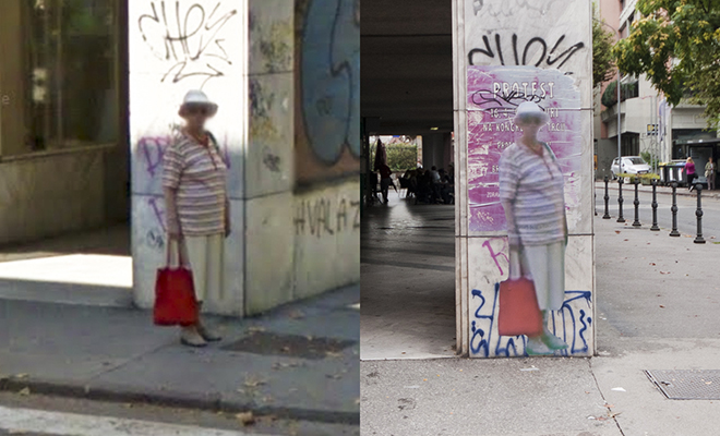 Slike ljudi, ki jih najdemo v Googlovem uličnem pogledu, so natisnili v naravni velikosti in jih nalepili na prav tistih mestih, kjer so bile posnete. Izrezane posterje, natisnjene v barvah na tanek papir, so s pšeničnim lepilom pritrdili na zidove javnih zgradb prav tam, kjer se pojavljajo v Googlovem uličnem pogledu. Projekt StreetGhosts razkriva problematiko, povezano z estetiko, biopolitiko, zasebnostjo in pravom, ki jo je mogoče raziskovati skozi umetnikove izjave in teoretska razmišljanja. Umetniško delo postane performans, ki postavlja v nov kontekst ne le že obstoječa informacijska gradiva, ampak tudi konflikt. Pošastna človeška telesa so videti kot žrtve informacijske vojne v mestu, kot bežen zapis kolateralne škode v bitki med korporacijami, vladami, civilisti in algoritmi.