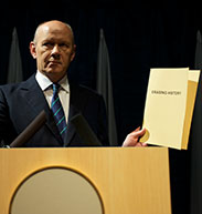 Closed Circuit (Who, What, Where, When, Why and How #2) is a new performative work by Rod Dickinson. It interrogates the historical form of the presidential speech and government press briefing. Set in a meticulously constructed press conference environment, two actors deliver a simulated press briefing. The script of Closed Circuit (Who, What, Where, When, Why and How #2) was written in collaboration with writer Steve Rushton, and is composed solely of fragments of press statements and speeches delivered since the Cold War. The script focuses on the way in which similar declarations have been used by numerous governments – across continents and spanning the ideological divide – to declare and maintain states of crisis and justify acts of violence. The press briefing is inexorably linked to the feedback circuitry of television. Just as the crisis is always in the present, the liveness of television calls the present forward. The press statement thus works as a feedback mechanism, which is carefully constructed for the template of television that disseminates it, and which in turn shapes political and social reality. The fragments are woven together irrespective of context and date – in fact the only change that Dickinson and Rushton have made to the original material is to remove any specific mention of people, places and dates. Consequently, the who, what, where, when, why and how are removed from the spoken text. However, their provenance is revealed via synced autocue text scrolling up large screens positioned on both sides of the audience. The visual and theatrical syntax of the political briefing alongside the repetition of rhetoric reproduces the logic that governs public life and media in general.Rod Dickinson’s work explores ideas of belief and social control. Using detailed research into moments of the past and present, he has made a series of meticulously re-enacted events that represent both the mechanisms that enable belief, and the social systems that underpin much human behaviour. His previous works include a recreation of Stanley Milgram's infamous 1961 social psychology experiment Obedience to Authority (The Milgram Re-enactment, 2002), and a recreation of the media surrounding a bomb attack on Greenwich Observatory in 1894 (Greenwich Degree Zero, 2006). Steve Rushton is a writer and editor based in Rotterdam. Rushton’s publications include Experience, Memory, Re-enactment, 2005 (co-editor); The Milgram Re-enactment, 2003 (editor). He writes essays and stories for artists’ publications and contributes regularly to DotDotDot. Recent projects include the exhibition After Neurath: Like Sailors on the Open Sea, Stroom, The Hague, 2006-07. He is a co-founder of the research group Signal: Noise, which investigates the prevalence of notions of feedback in contemporary culture. Albert Welling is a professional actor and has worked extensively in theatre, television and film for over 35 years. He has written several plays for BBC radio and was co-founder of BTC theatre company in his home town of Bedford in the UK.William Neenan is a UK/US dual national who has worked in both countries. Having started his career with Stefan Schnabel's Rainbow Theatre in America, he now lives in London and works primarily in television and film, including two roles for director Mike Leigh. Credits: Closed Circuit (Who, What, Where, When, Why and How #2) Concept: Rod Dickinson in collaboration with Steve Rushton Performed by: Albert Welling, William Neenan Produced by Aksioma – Institute for Contemporary Art, Ljubljana Co-produced by Zavod Bunker Executive producer: Marcela Okretič and Janez Janša Supported by the Ministry of Culture of the Republic of Slovenia and the City of Ljubljana. Special thanks: Arts Council England, Smart Project Space Contact: Aksioma - Institute for Contemporary Art, Ljubljana |