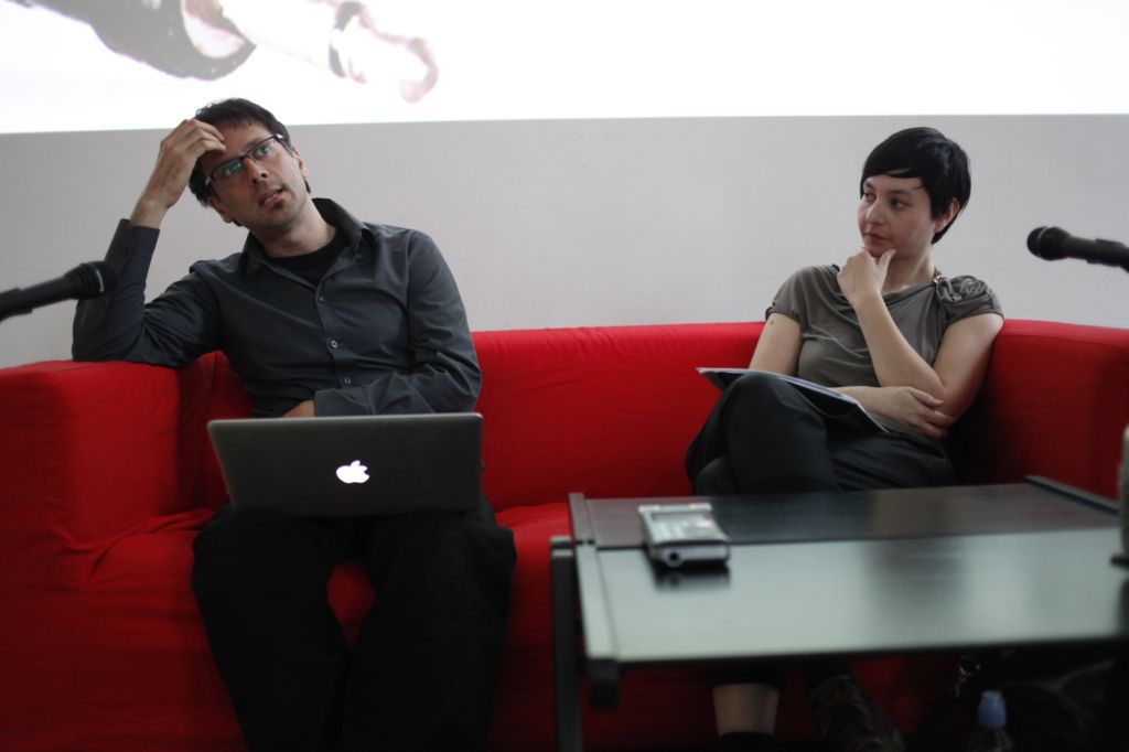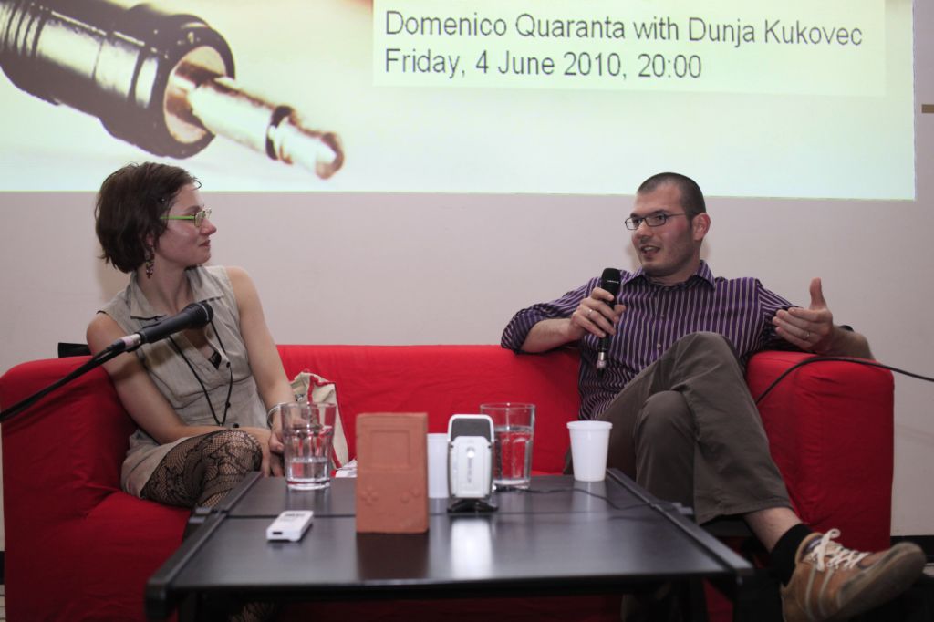 -------------- Photo credits: -------------- Dunja Kukovec with Domenico Quaranta Tactics and Practice: New Media Drivers June 2010, Kino Šiška, Ljubljana, Slovenia Production: Aksioma - Institute for Contemporary Art, Ljubljana Photo: Miha Fras