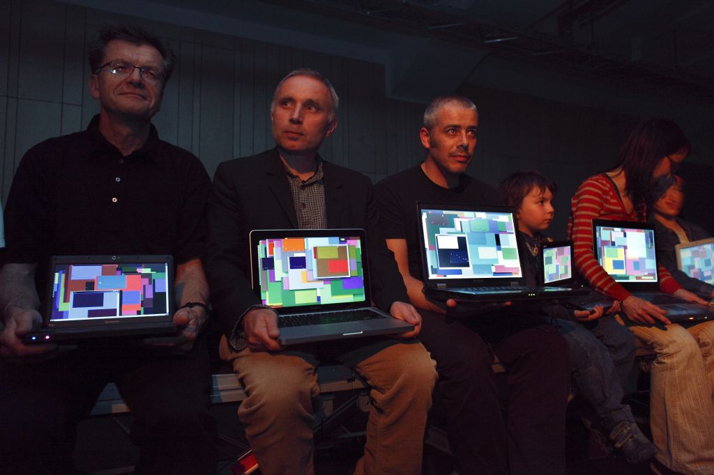 -------------- Photo credits: -------------- hans w. koch the benchmark consort Tactics and Practice: New Media Drivers June 2010, Kino Šiška, Ljubljana, Slovenia Production: Aksioma - Institute for Contemporary Art, Ljubljana Photo: Miha Fras