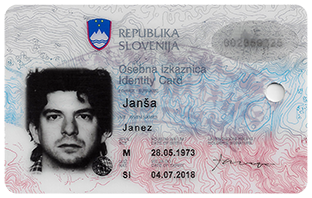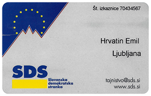 Janez Janša, Janez Janša, Janez Janša The work Troika deals with 3 pillars of contemporary biopolitics: politics, law and economy. The artists display a set of official documents indicating their political orientation, legal state and economical way of operating: 3 SDS membership cards, 3 ID cards and 3 Mastercards with the reproduction of their earlier action Mount Triglav on Mount Triglav (the highest mountain in Slovenia and preeminent symbol of the Slovene nation, a stylized depiction of which is the central element of the Slovenian coat of arms, and is in turn featured on the flag of Slovenia.). These documents are displayed in opposition to a video showing the letter the 3 artists wrote to the politician Janez Janša soon after changing their names. |